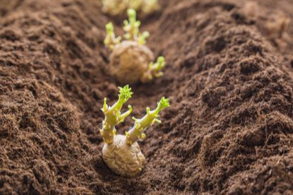 - 비료 위에 흙을 5cm 정도 덮은 뒤 씨감자 배치