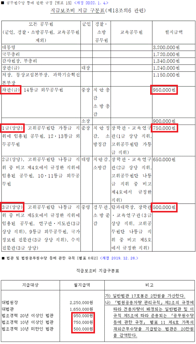 직급보조비는 법관에 대한 우대일 뿐, 직급보조비 50만 원 받는다고 말단 판사 급수가 3급인 건 아닙니다.