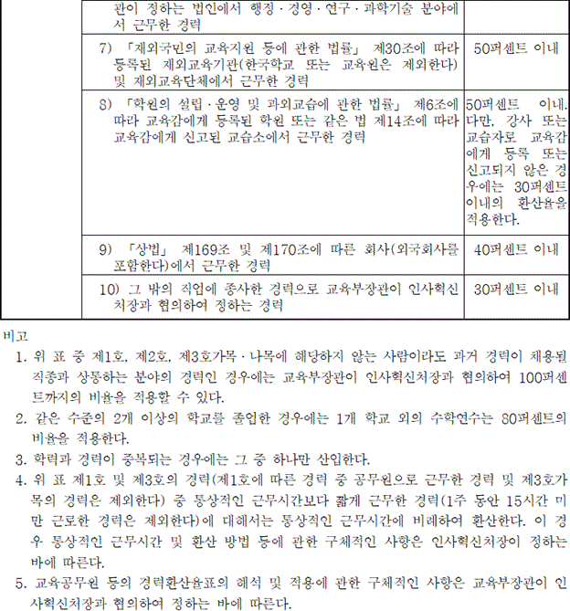 교사 호봉 획정표 초임교사 호봉산정 기준