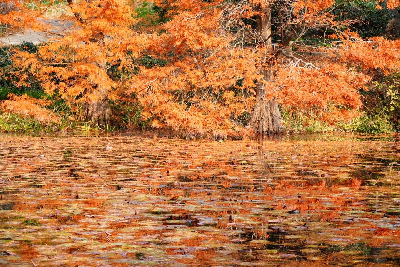 • 낙우송: 황금·적갈·주홍이 뒤섞여 호수·늪을 화려하게 장식.