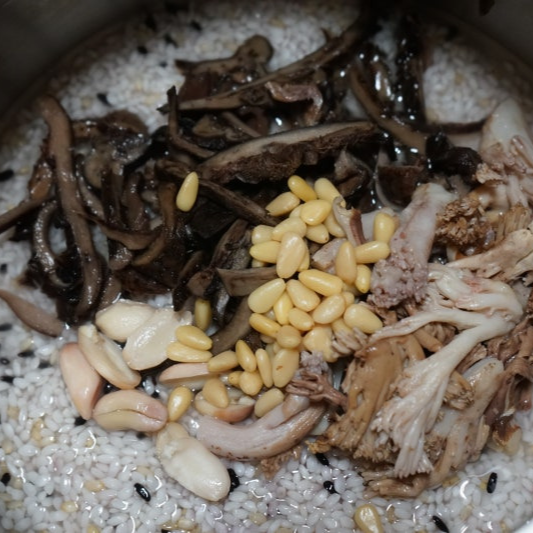 - 조리: 쌀은 30분 불림 후 물량을 평소보다 살짝 줄여 능이 불린 물을 포함해 맞춥니다. 전기밥솥 백미모드로 취사, 뜸 10분.