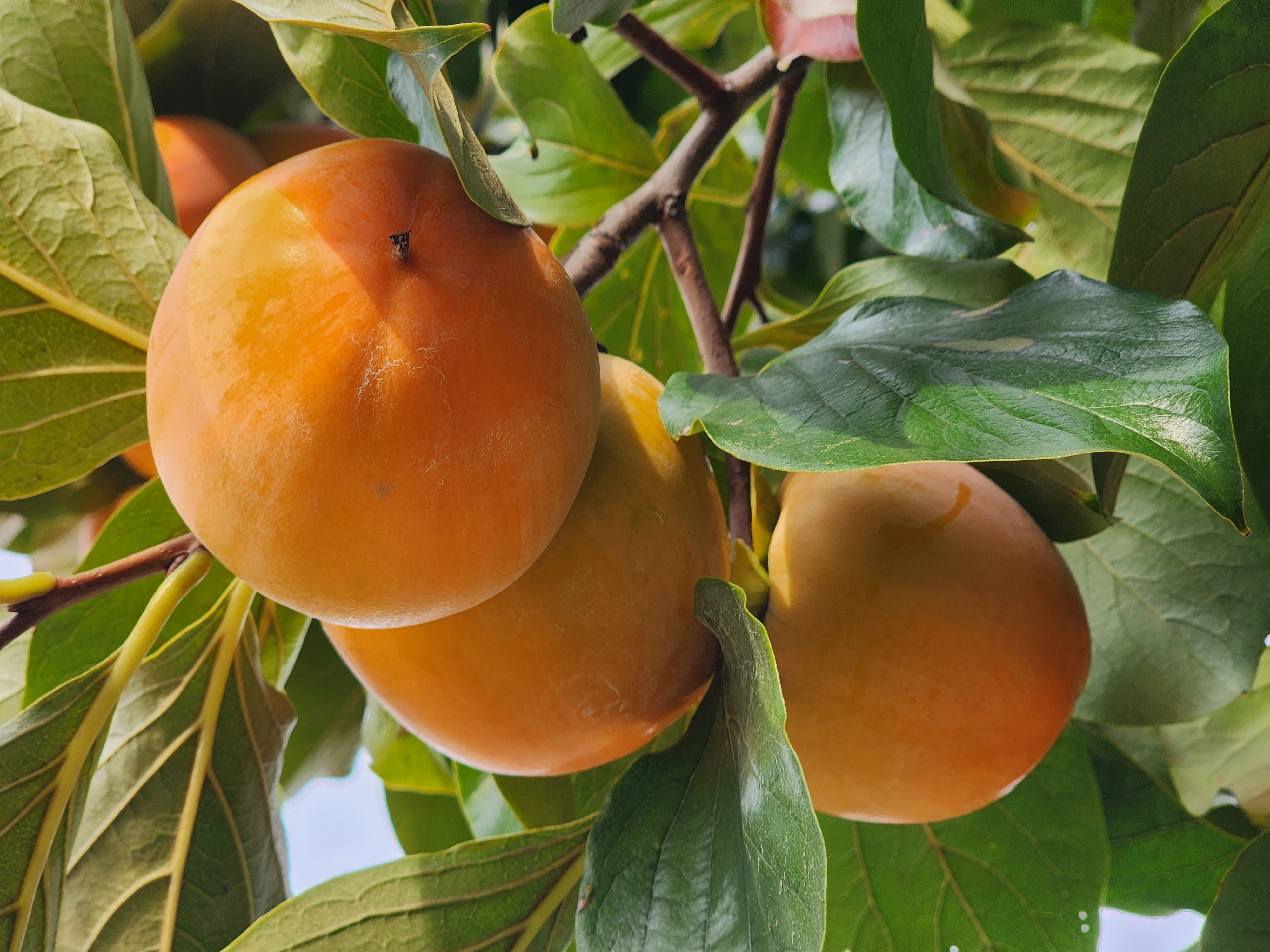 대봉감은 감 중에서도 크기가 크고 과육이 단단하며 당도가 높아 ‘홍시용 감’으로 널리 알려져 있습니다. 겉은 주황색을 띠고, 속살은 단단하지만 숙성되면 부드럽게 변해 꿀맛 홍시로 완성됩니다. 특히 전라남도 영암, 경남 산청, 경북 상주 지역은 국내 대봉감의 대표 산지로 꼽힙니다. 품질 좋은 대봉감은 껍질이 매끄럽고 윤기가 돌며, 꼭지 부분이 갈라지지 않고 단단히 붙어 있는 것이 특징입니다.