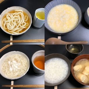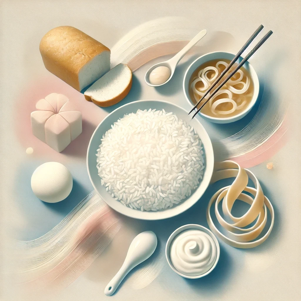- 곡류: 흰쌀밥, 흰죽, 미음, 흰식빵, 백면(소면·우동면), 흰떡국떡