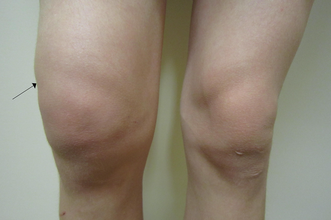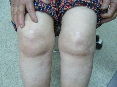 - 무릎 둘레가 반대쪽보다 현저히 굵어짐