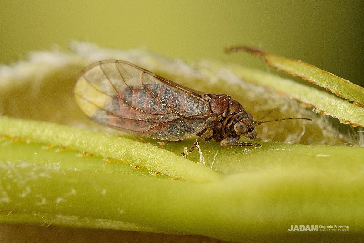 - 방제 방법: 이른 봄 과수원 낙엽과 과수원 근처 풀숲을 제거합니다. 월동기 기계유유제를 처리하고 개화 전에는 칼립소 액상수화제와 같이 꽃에 안전한 제품을 살포합니다. 개미와 함께 서식하므로 근처 개미집을 제거합니다.