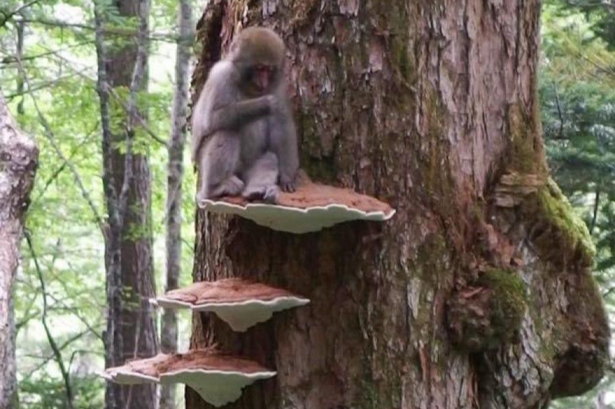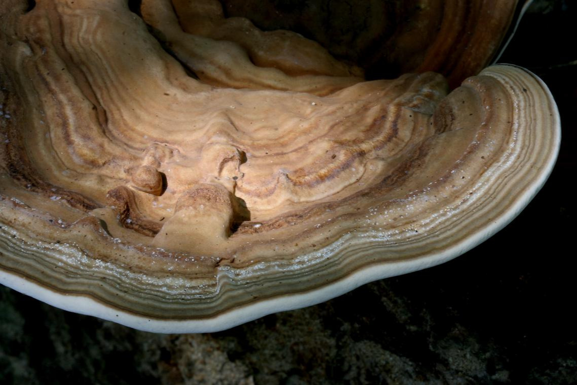 - 잔나비걸상버섯(잔나비불로초로 통용): 선반형으로 넓게 퍼지며, 윗면이 비교적 평평하거나 동심원 무늬가 나타나는 경우가 많고, 전체적으로 ‘걸상’처럼 넓은 판 형태로 보이기 쉽습니다. 오래된 개체는 매우 단단합니다.