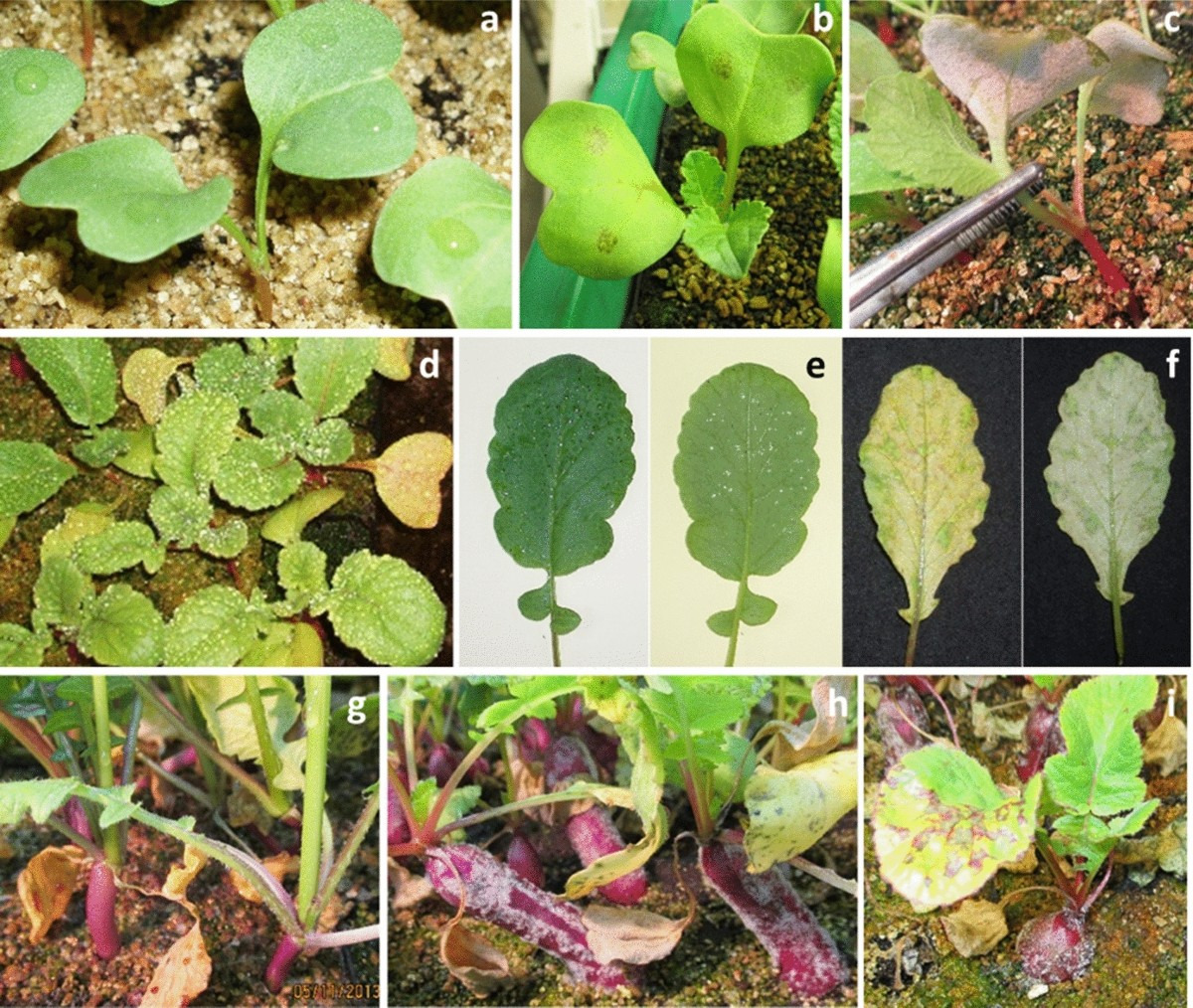 - 잎 뒷면에 흰 곰팡이, 무청 잎이 누렇게 변함