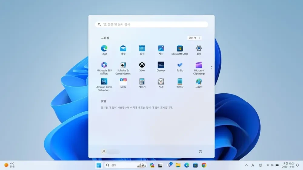 윈도우11 설치가 완료되면 다음 단계를 수행하는 것이 좋습니다.