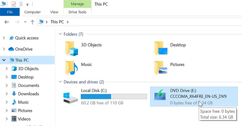 5. 다운로드된 ISO 파일을 더블클릭하여 가상 드라이브로 탑재