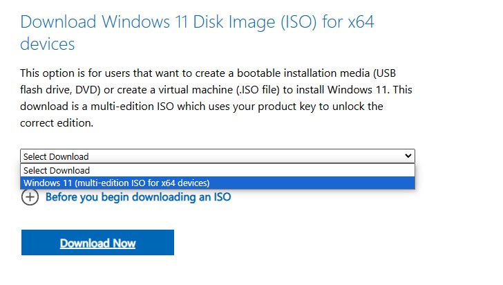 3. ‘Windows 11 디스크 이미지(ISO)’ 항목에서 Windows 11 (Multi-edition ISO) 선택