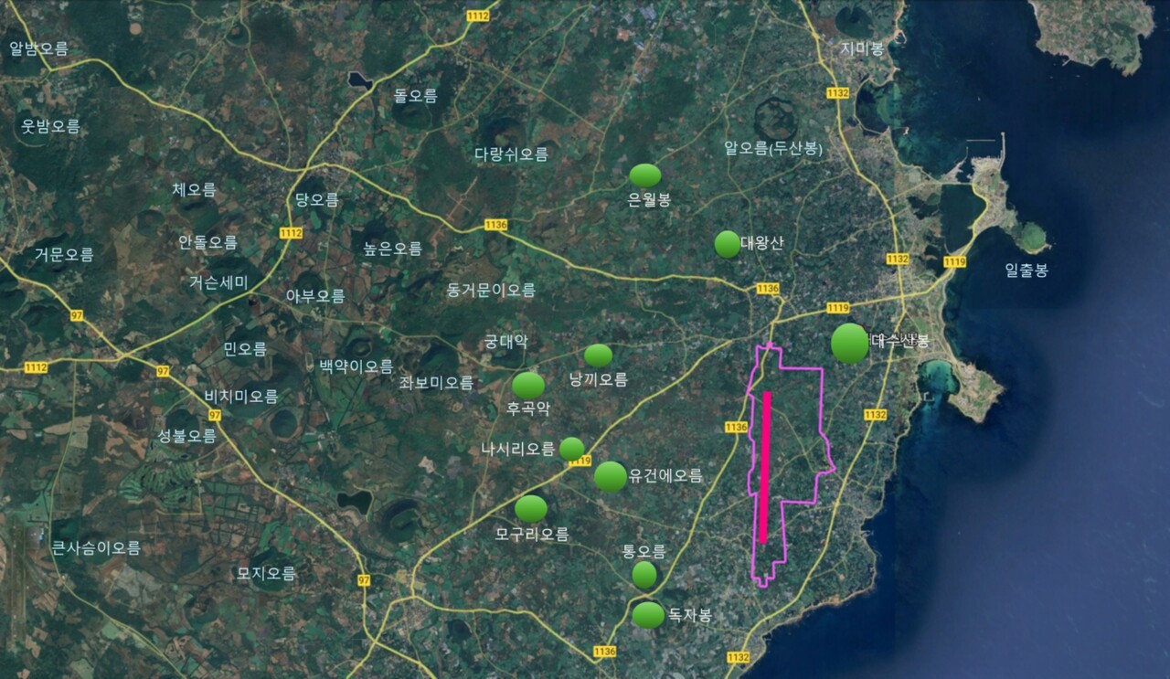• 온평리: 공항 예정부지 면적의 대부분을 차지하는 핵심 구역. 활주로 축선 배치의 주요 기준점 역할.