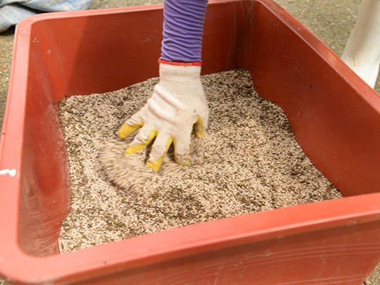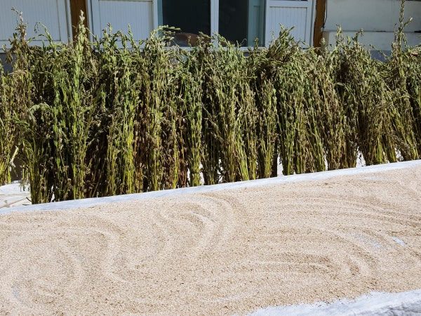 - 직사광선 아래에 바로 두지 않고 통풍이 잘되는 그늘진 곳에 세워두어야 꼬투리가 자연스럽게 갈라지고 낟알이 떨어집니다.