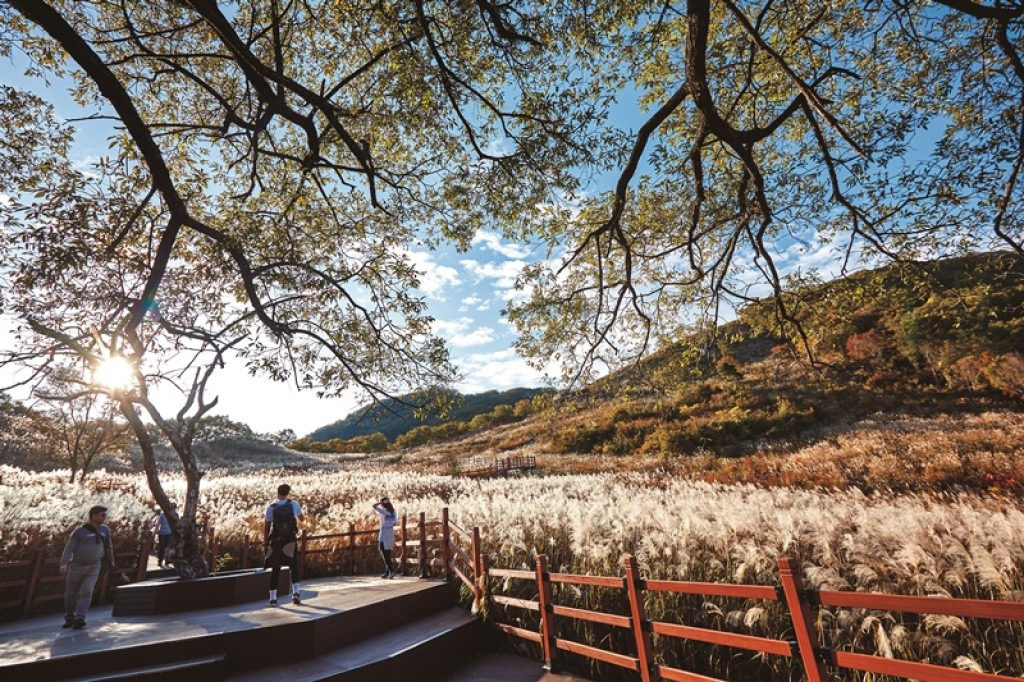 명성산은 가을 억새밭으로 유명합니다. 정상에 오르면 철원평야와 한탄강의 풍경이 시원하게 펼쳐지며, 억새가 바람에 일렁이는 장관은 철원 여행의 백미로 꼽힙니다. 등산로가 비교적 완만해 초보자도 오르기 수월합니다.