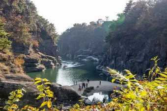 ‘한국의 나이아가라’라고 불리는 직탕폭포는 넓게 쏟아지는 물줄기와 독특한 지질 구조가 어우러진 경승지입니다. 여름에는 시원한 피서지로, 가을에는 단풍 명소로 사랑받습니다. 한탄강 국가지질공원 탐방 코스로도 인기가 높습니다.