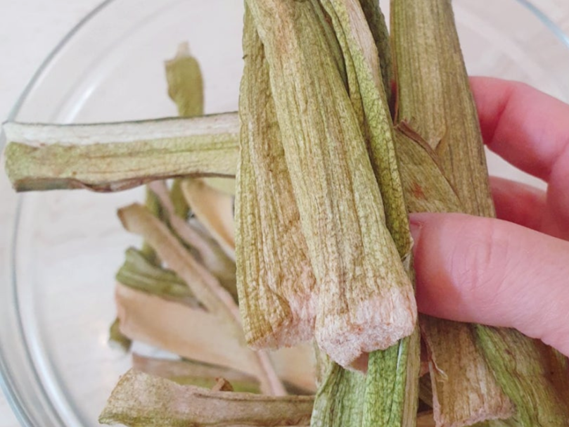 말린 토란대 준비 과정
